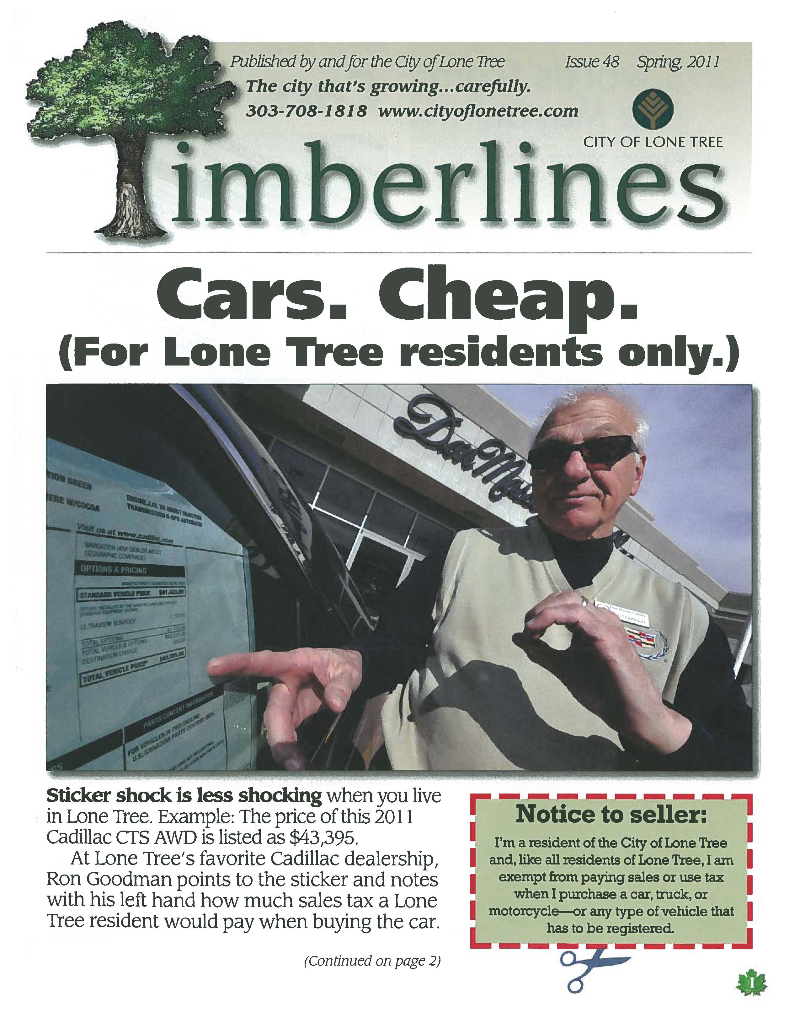Did you know that Lone Tree charges no City Sales Tax on the purchase of a new Car, Truck or Motorcycle? It’s true! If you are a resident of Lone Tree, you pay no City Sales Tax on the purchase of a Car, Truck or Motorcycle.