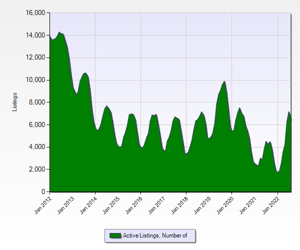 The last 3 months have ended with 7,300 Listing in July, 6,914 Listings in August and not 6,979 at the end of September. We will keep a close eye on how October closes out.